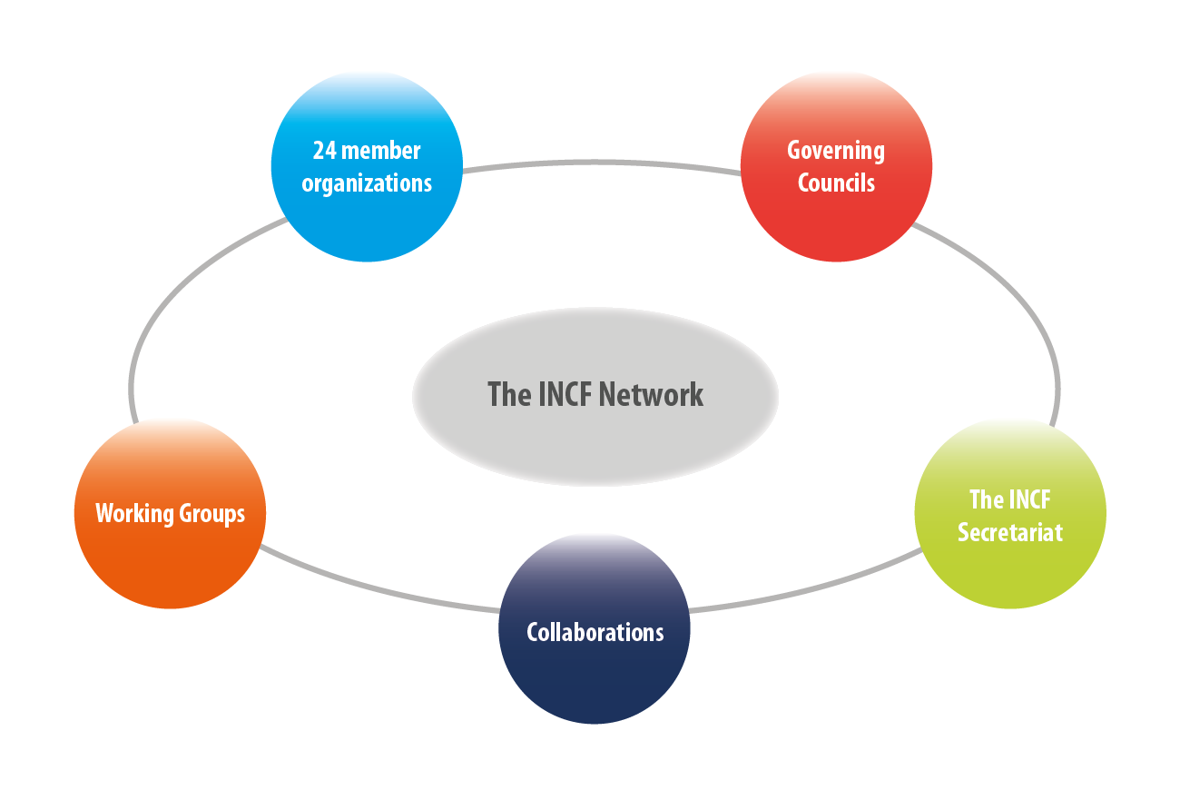The 6 governing councils of the network, composed of representatives from the national nodes, represent the thought leadership of the INCF network and are responsible for setting the priorities of the network in terms of science, training, and infrastructure, as well as setting the strategic vision for the organization.