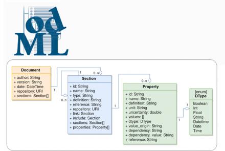 Open metadata markup language (odML) is a format for storing metadata in an organised human- and machine-readable way. It does not constrain the metadata content, while providing a common schema (with implementations in XML, JSON, YAML) to integrate metadata from various sources. In addition, odML facilitates and encourages standardization by providing terminologies for metadata.
